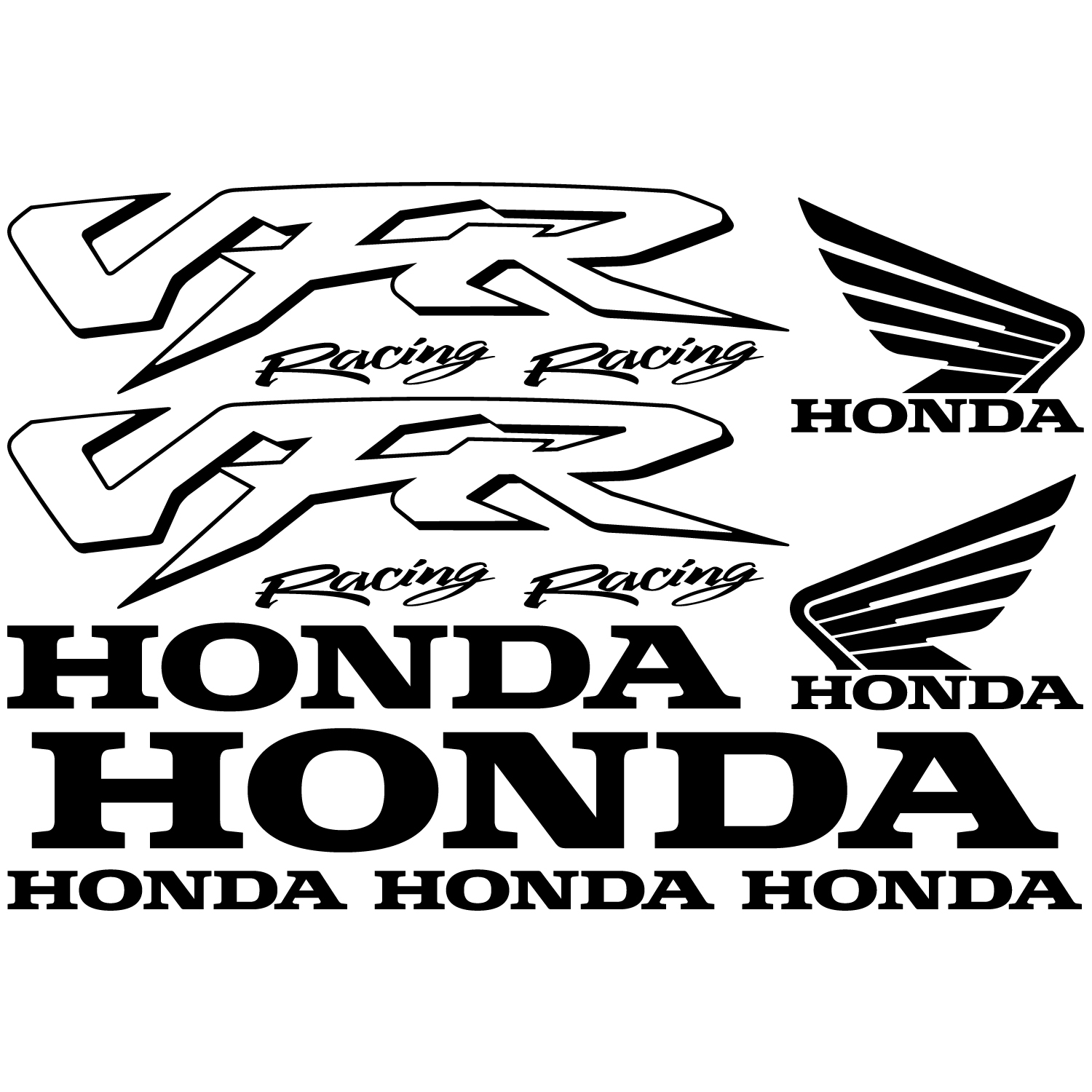 2 Logo Honda 12 x 9,6 cm 2 Vfr Racing 34 x 8,7 cm 1 Honda 30 x 3,6 cm 1 Honda 4 2x 5 cm 3 Honda 13,9 x 1,7 cm